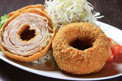 バームカツは黒豚バラ肉を幾重にも重ね、ドーナツの形に仕上げています!
