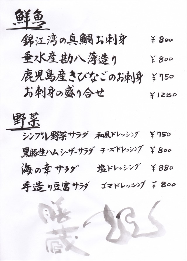 膳蔵 夜メニュー